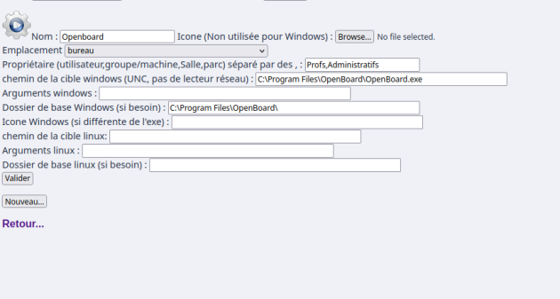Un fichier /etc/sambaedu/applications/shortcuts/ est créé, et va contenir des bloc d'informations comme celui-ci :