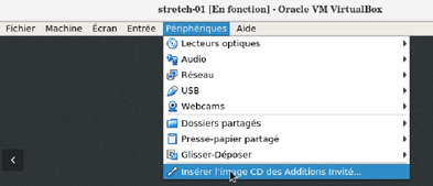 Selon l'usage de votre client-linux, il peut être pratique d'installer les Additions invités : cela vous permettra, par exemple, d'échanger des fichiers entre la machine virtuelle et la machine hôte via un répertoire partagé ou bien d'utiliser la fonction copier/coller entre les deux machines.
